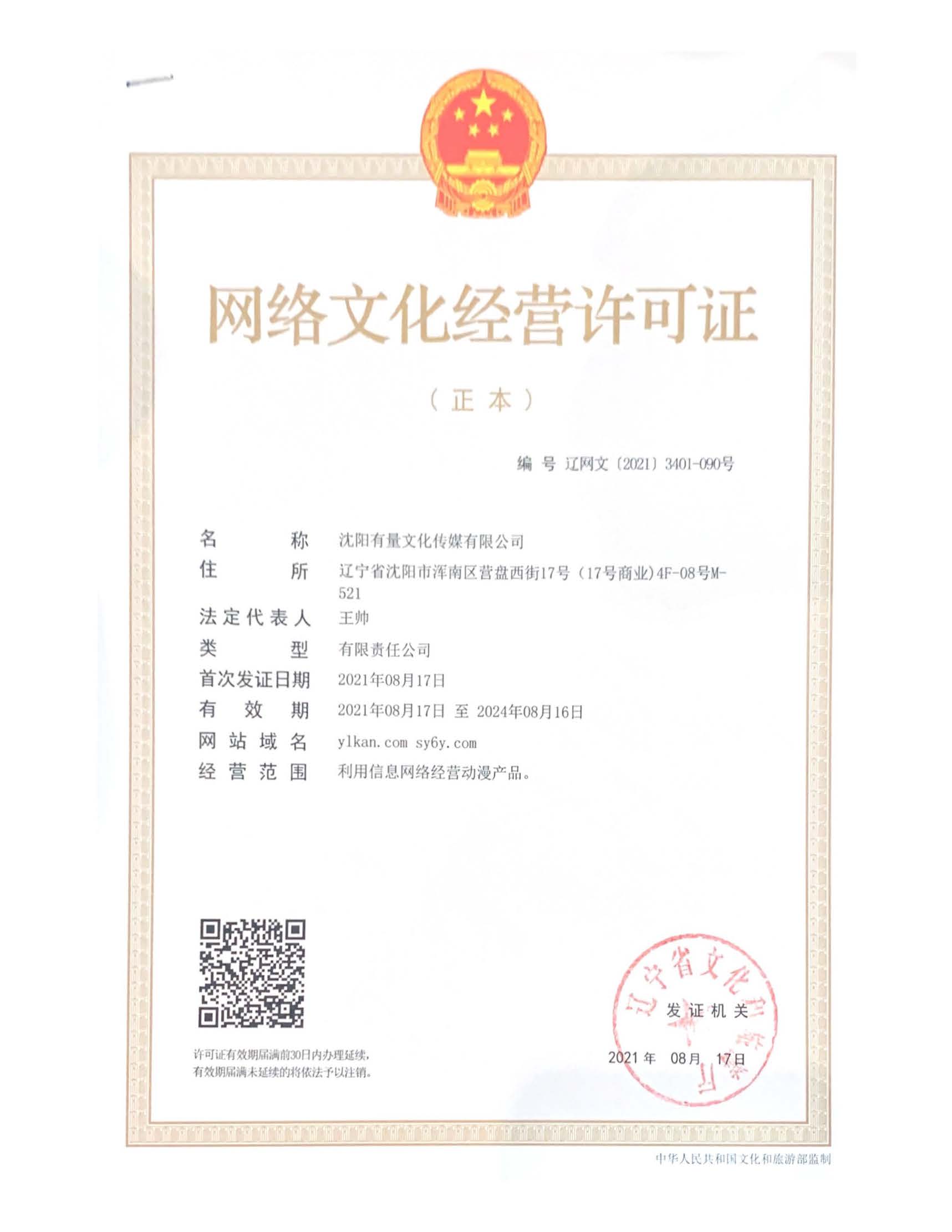 Copyright (C) 2022 沈陽有量文化傳媒有限公司 公司備案號:遼ICP備2021006768號-4 網絡文化經營許可證編號 遼網文(2024)3556-587號 營業執照